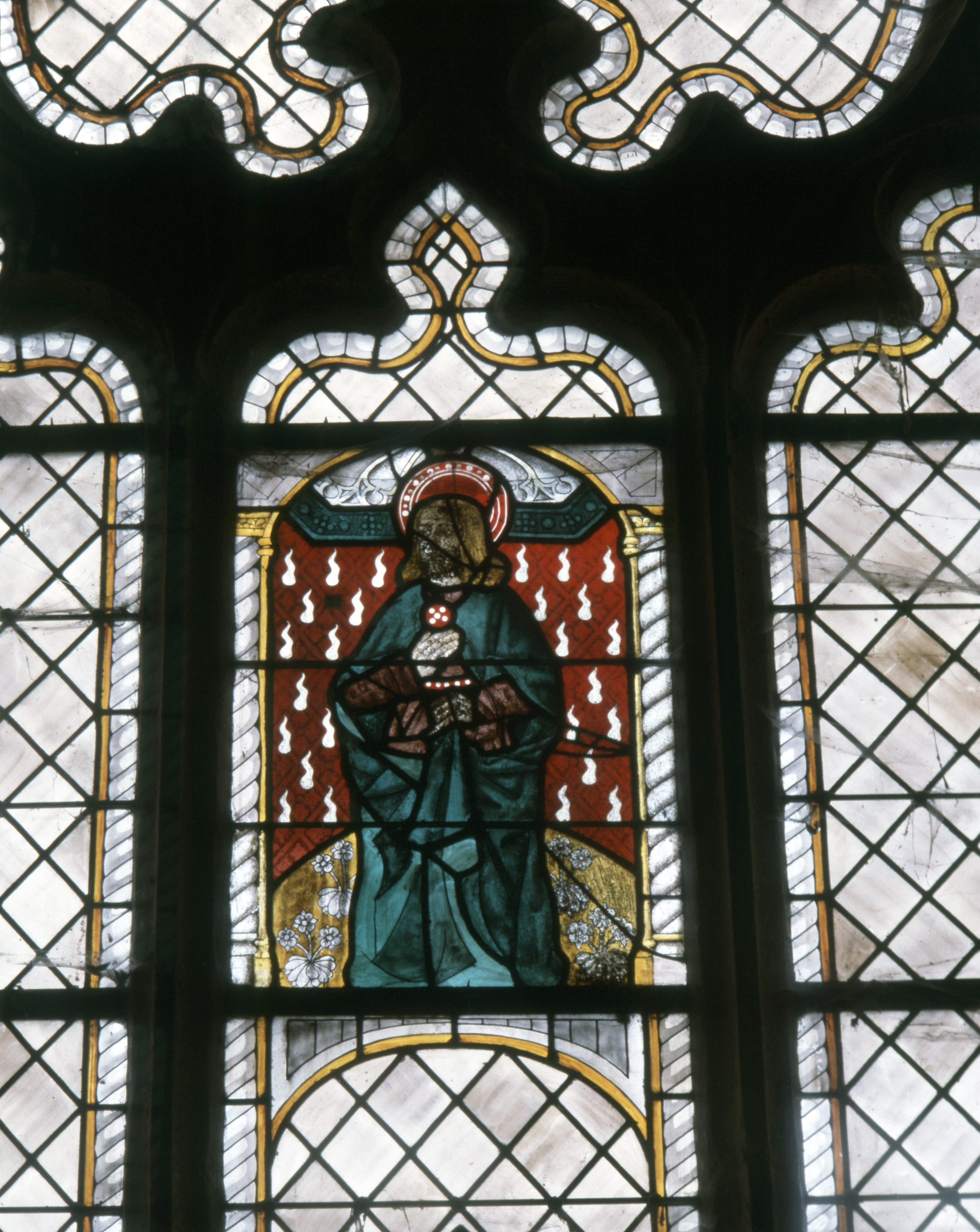 Verrière de la baie 0 : Christ ou saint non identifié (état en 1984)Immatriculation