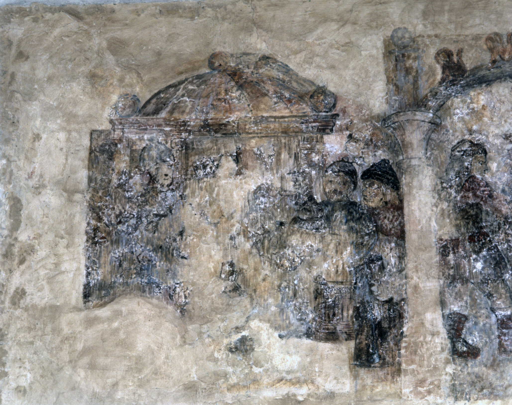 Peinture murale 3 : groupe de personnages sous une tente (état en 1984)Immatriculation