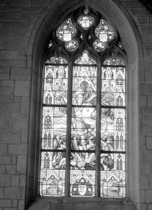Verrière de la baie 16 : Saint Michel et le dragon (état en 1984)Immatriculation