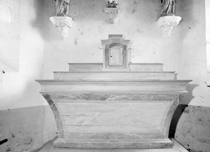 Ensemble du maître-autel : autel, tabernacle, 2 gradins d'autel, chapelle Saint-Colomban, Crétudel (Loyat),