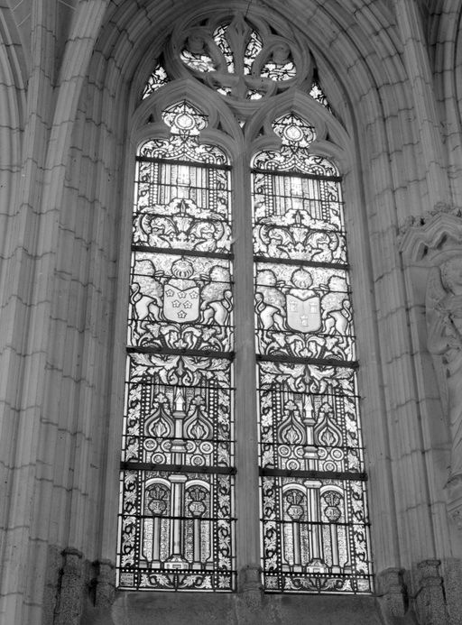 Chapelle, verrière de la baie 1 : armoiries d'alliance de la famille Lambilly et d'une famille non identifiée (état en 1984)Immatriculation