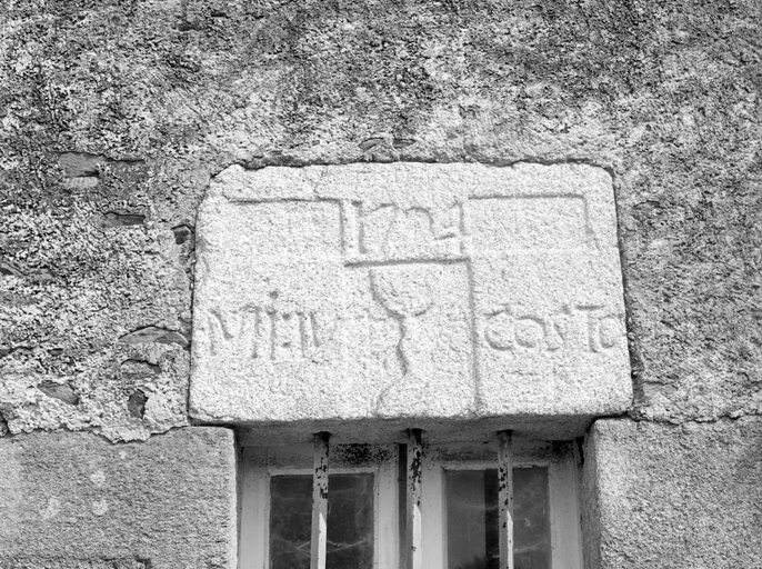 La Ville Buo, maison de prêtre, date et inscription sur le linteau : 1724 / MI : IV [un calice] COSTEImmatriculation