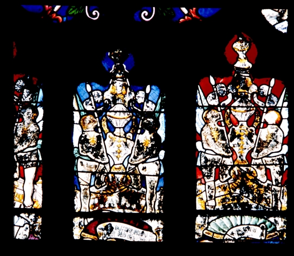 Verrière à personnages de la baie 0 (maîtresse-vitre) : Scènes de la vie de saint Pierre,