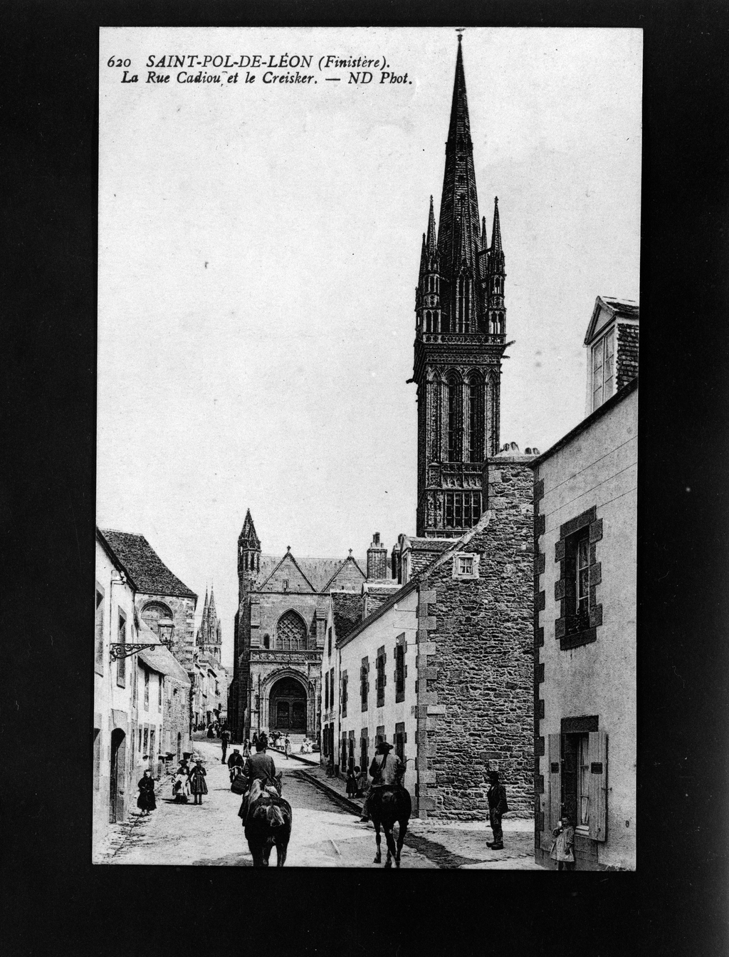 La rue Cadiou et le Creisker. Repro. Carte postale ancienne (A.D. Finistère)Immatriculation
