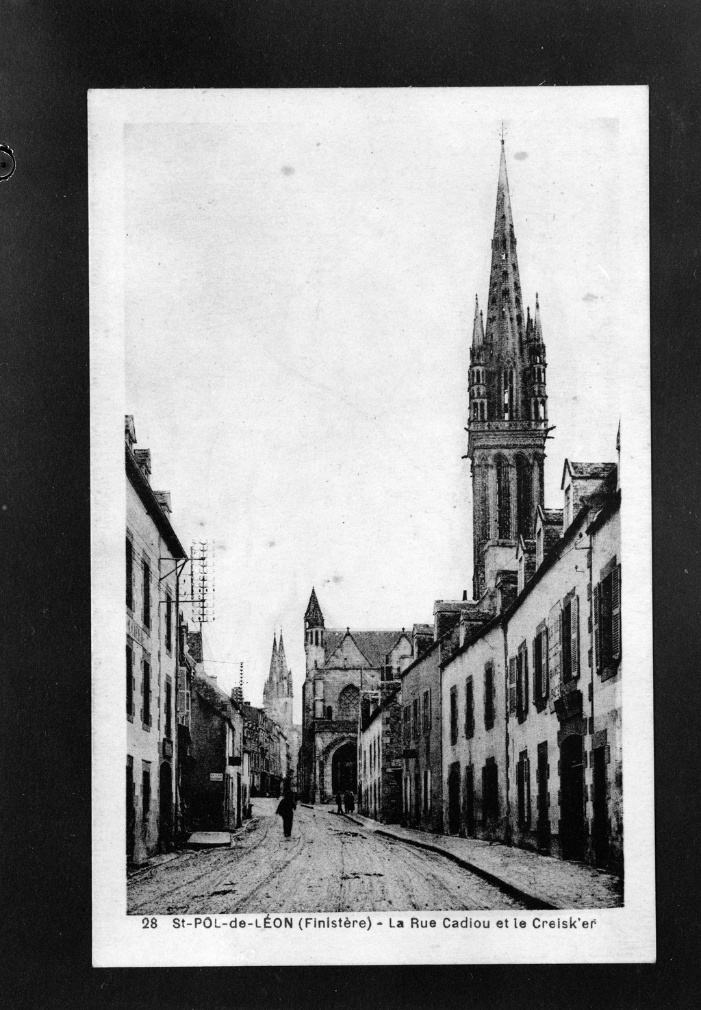La rue Cadiou et le Creisker. Repro. Carte postale ancienne (A.D. Finistère)Immatriculation