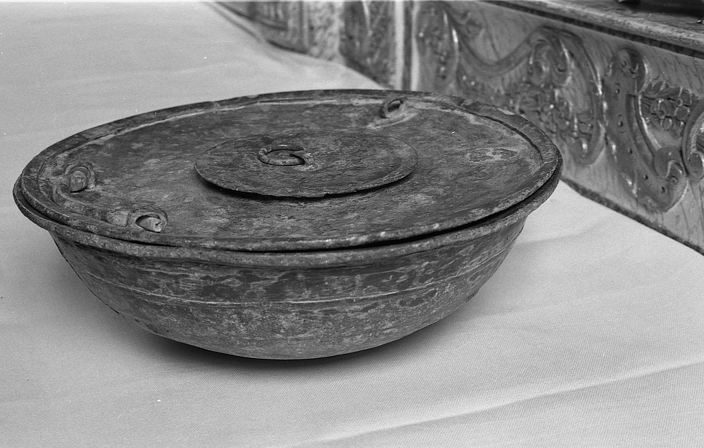 Cuvette des fonts baptismaux, église paroissiale Saint-Primel (Primelin),