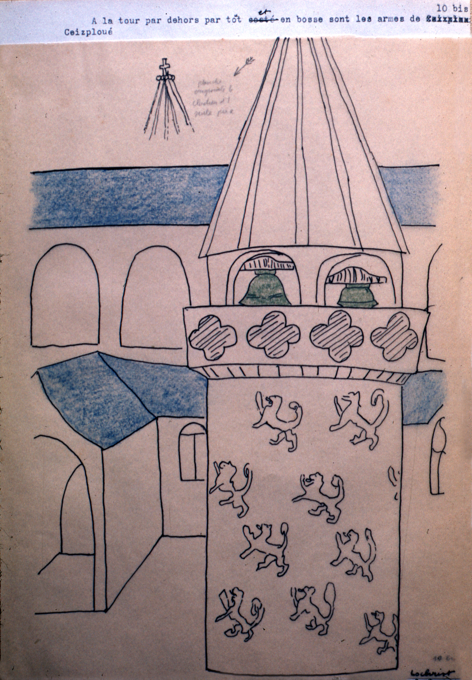 Prieuré, clocher de l'glise : armes des Kerman (dessin, 1614)Immatriculation