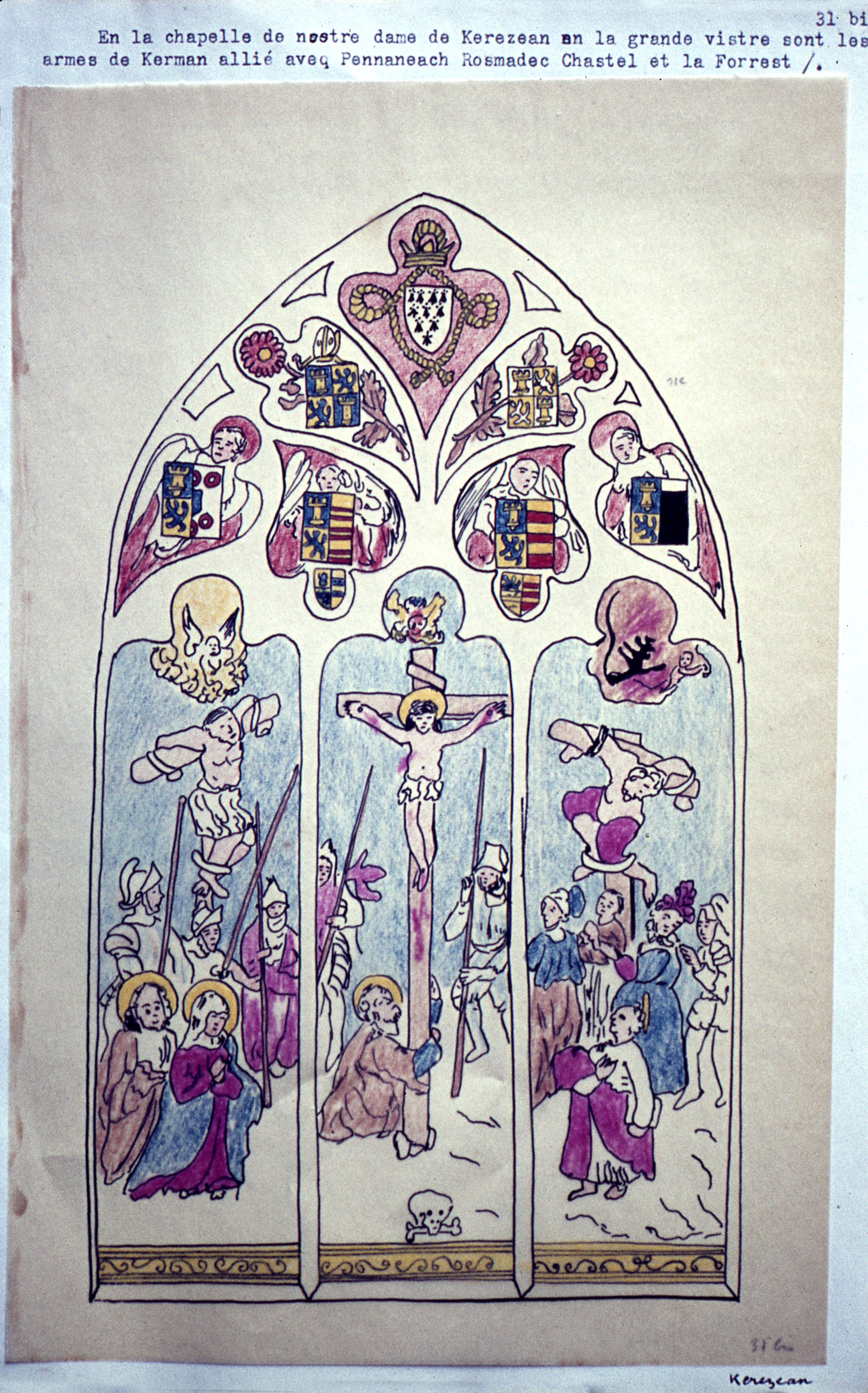 Chapelle ND de Kerzéan, dessin de la maîtresse-vitre : Crucifixion (dessin, 1614)Immatriculation