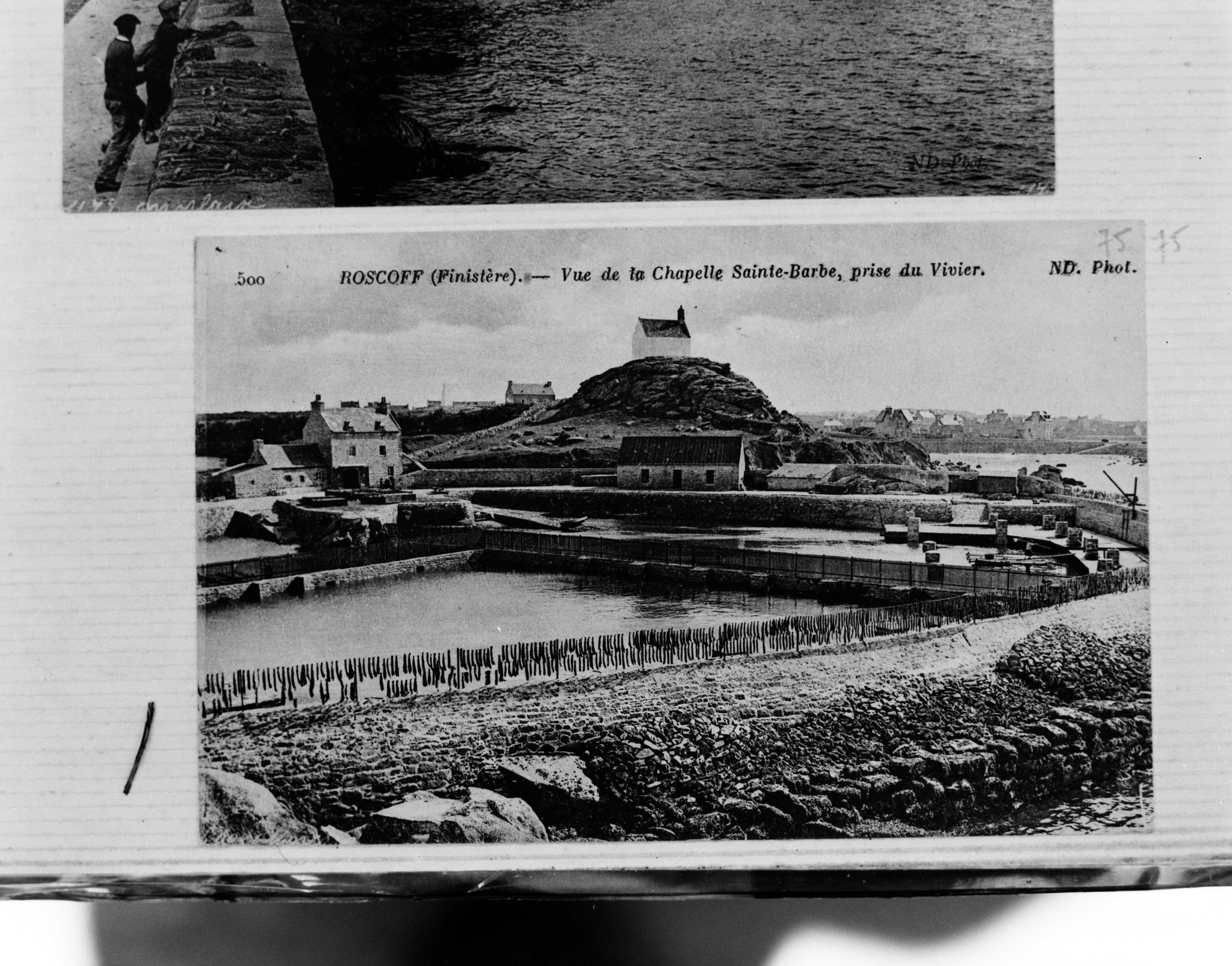 Vue de la chapelle Sainte-Barbe, carte postale. Au premier plan, les viviersImmatriculation