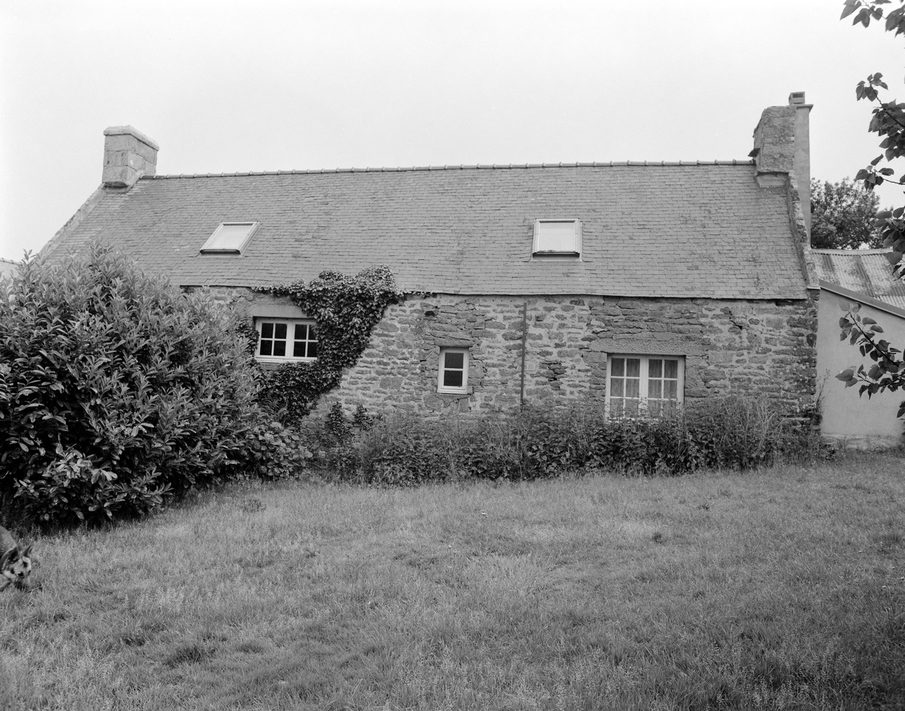 Lestrogant, ferme. Elévation postérieure du logis. (1985)Immatriculation