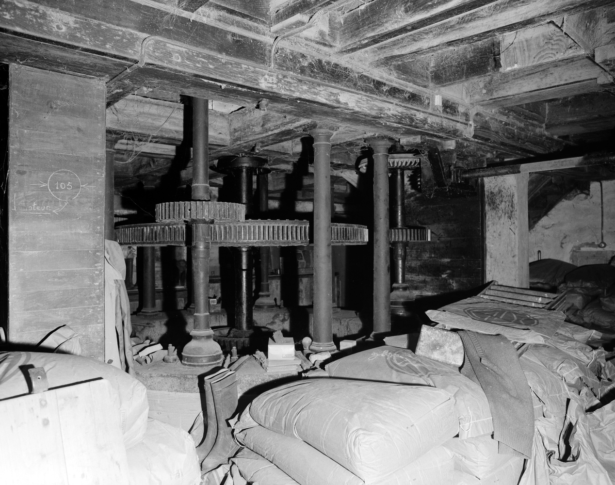 Intérieur, rez-de-chaussée, détail du mécanisme. (1985)Immatriculation