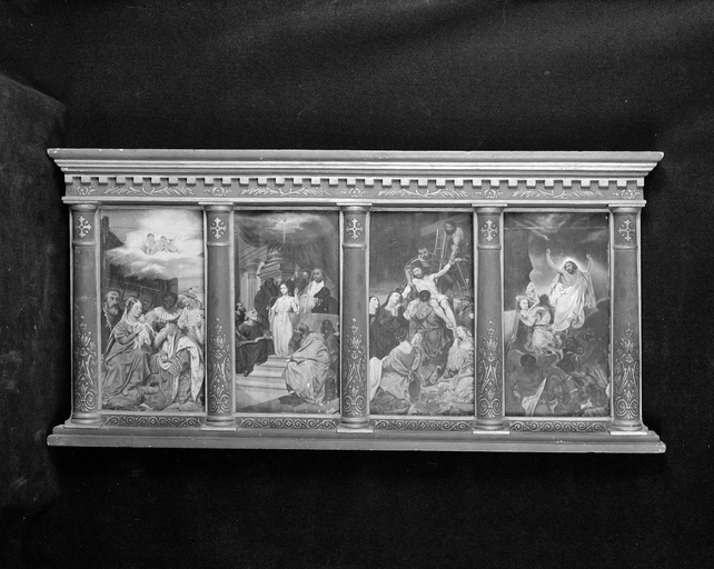 Ensemble de tableaux de Deveria formant paneaux de retable, vue générale.Immatriculation