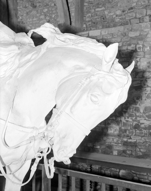 Tour Surienne, statue équestre Lariboisière, vue de détail de la tête du cheval.Immatriculation