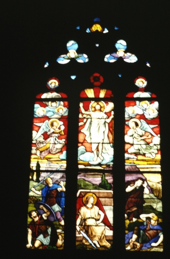 Verrière (5, verrière figurée) : cène, sainte Famille, résurrection, apparition du Sacré-coeur à sainte Marguerite-Marie alacoque, Assomption (baies 1,2,3,4,6),