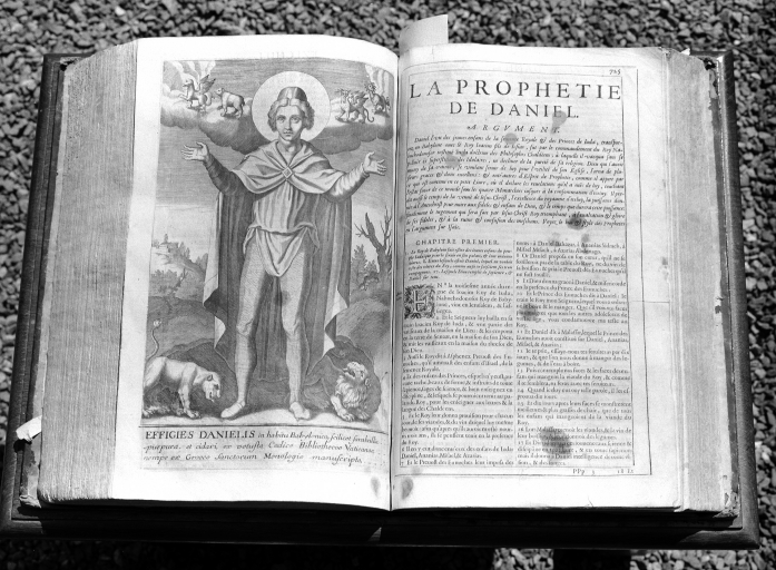 Livre de la Bible, vue générale livre ouvert.Immatriculation