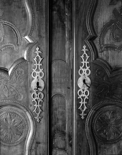 Armoire n°5, vue de détail des serrures (Collection privée).Immatriculation