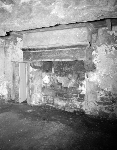 Salle, cheminée : vue générale.Immatriculation