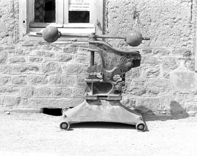 Forge, outil : cisaille poinçonneuse, vue générale.Immatriculation
