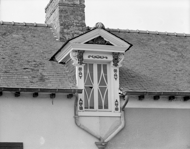 Route du Crouais, maison, lucarne datée 1854, vue de détail.Immatriculation