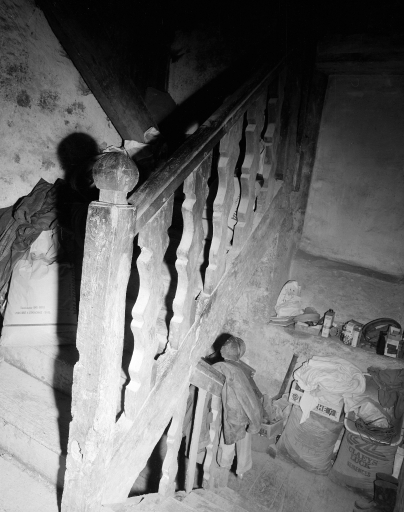 Escalier, vue générale depuis le rez-de-chaussée.Immatriculation