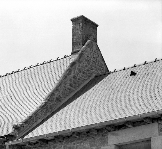 Logis sud : souche de cheminée, vue générale.Immatriculation