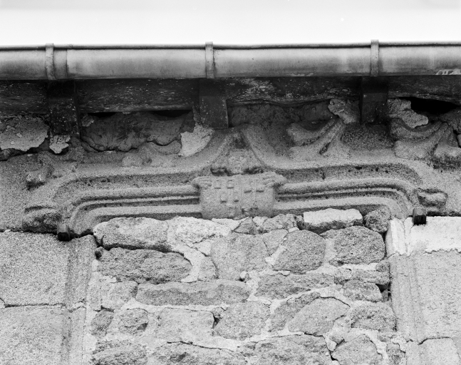 Ancienne chapelle, fenêtre murée, armoiries de Saint-PernImmatriculation