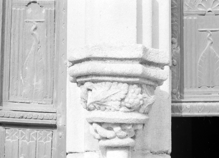Église, élévation sud, ébrasement droit du portail : la console de la niche à statue (état en 1985)Immatriculation