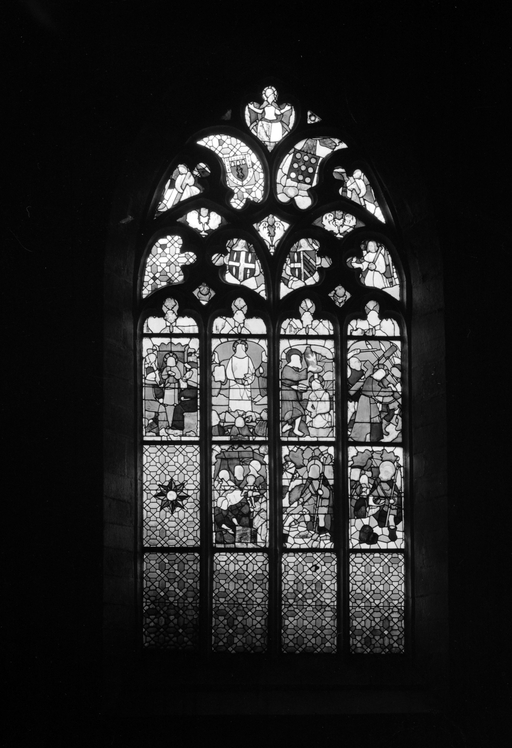 Verrière à personnages de la baie 5 : Scènes de la vie du Christ ; Scènes de la vie de saint Roch, église Saint-Gilles (Malestroit),