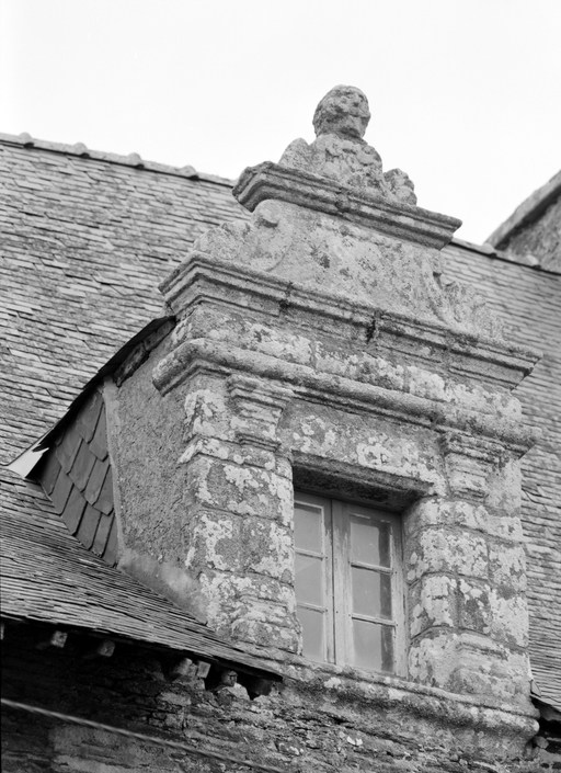Château, élévation sud du logis : une lucarne (état en 1985)Immatriculation