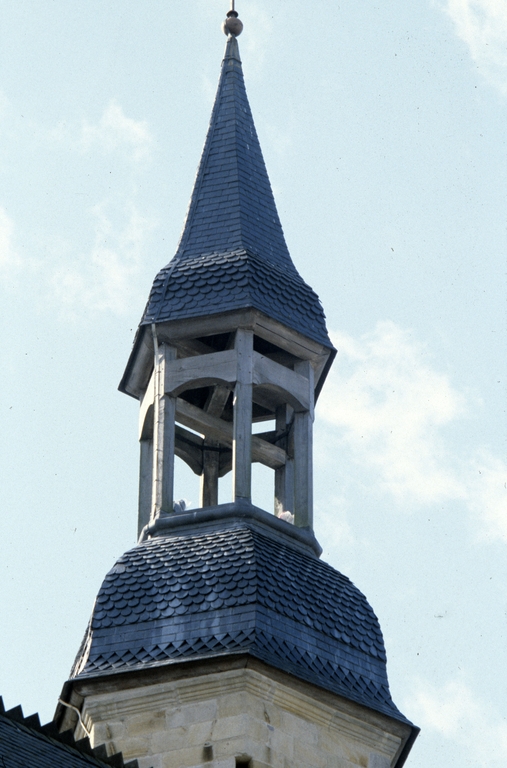 Église, élévation ouest : le clocher coiffant le beffroi (état en 1985)Immatriculation