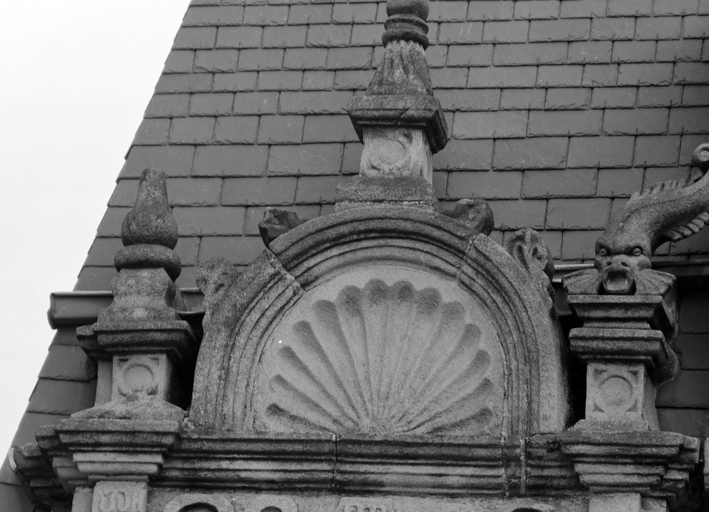 Maison, élévation sud : le fronton d'une lucarne (état en 1985)Immatriculation