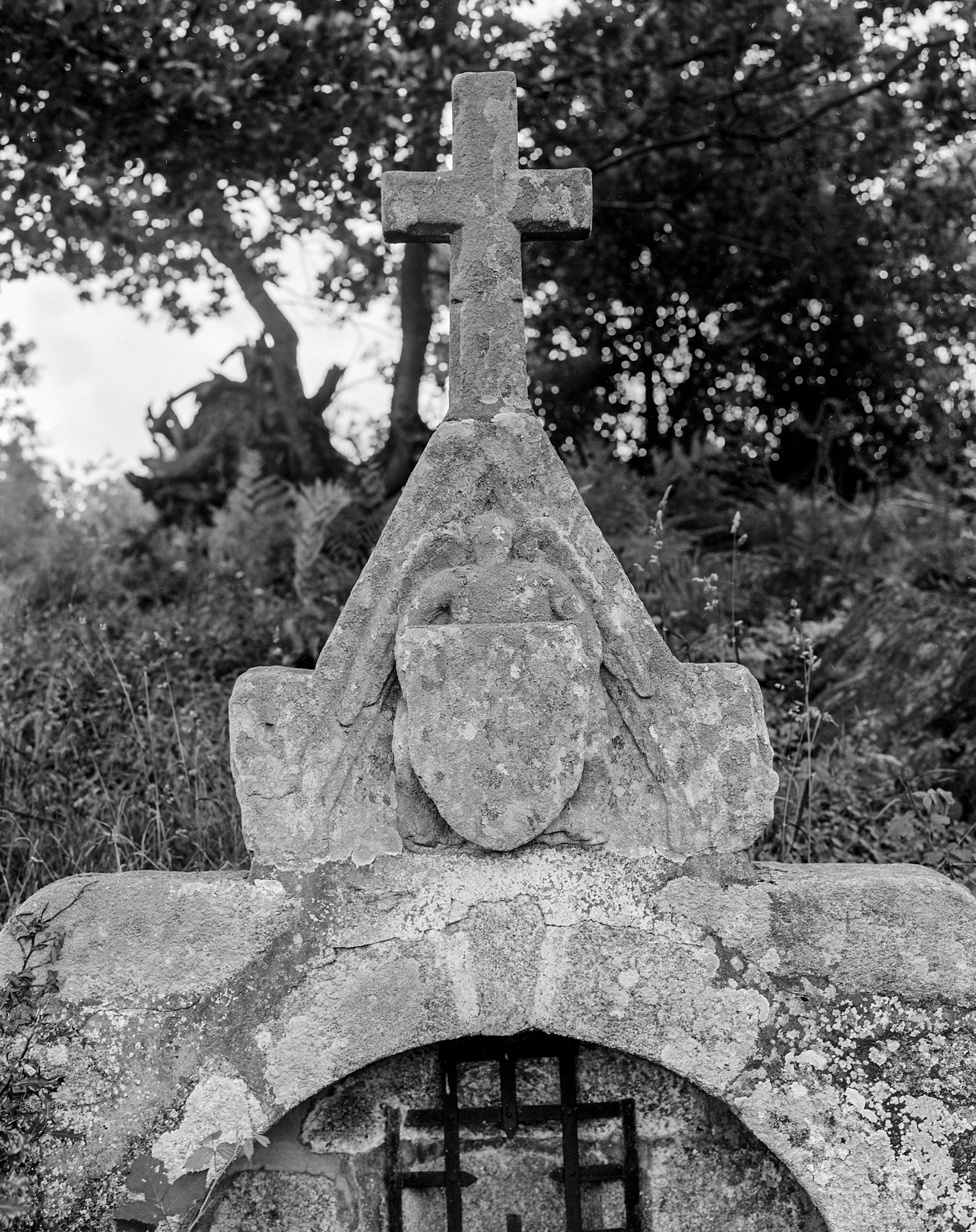 Fontaine de dévotion : partie supérieure. Détail du blason (état en 1985)Immatriculation