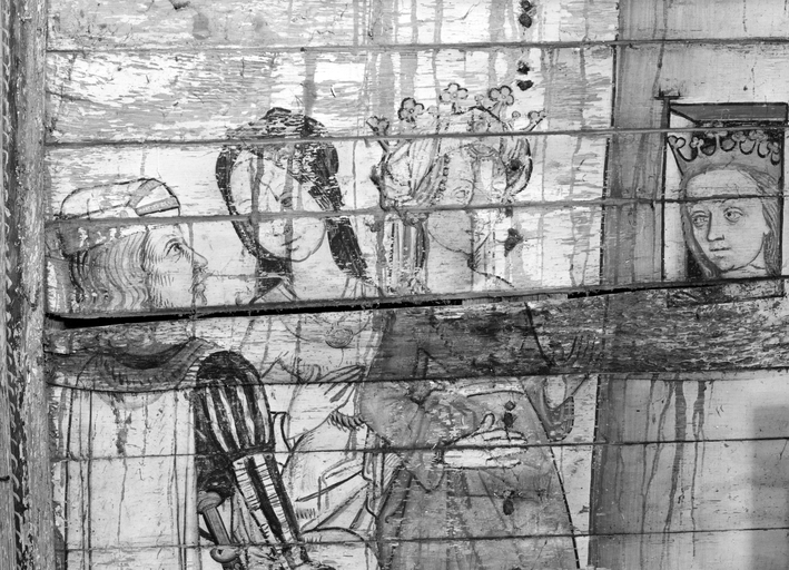 Peintures (8) : vie de sainte Catherine, anges, saint Pierre, saint Jean, chapelle Notre-Dame-de-Carmes (Neulliac),