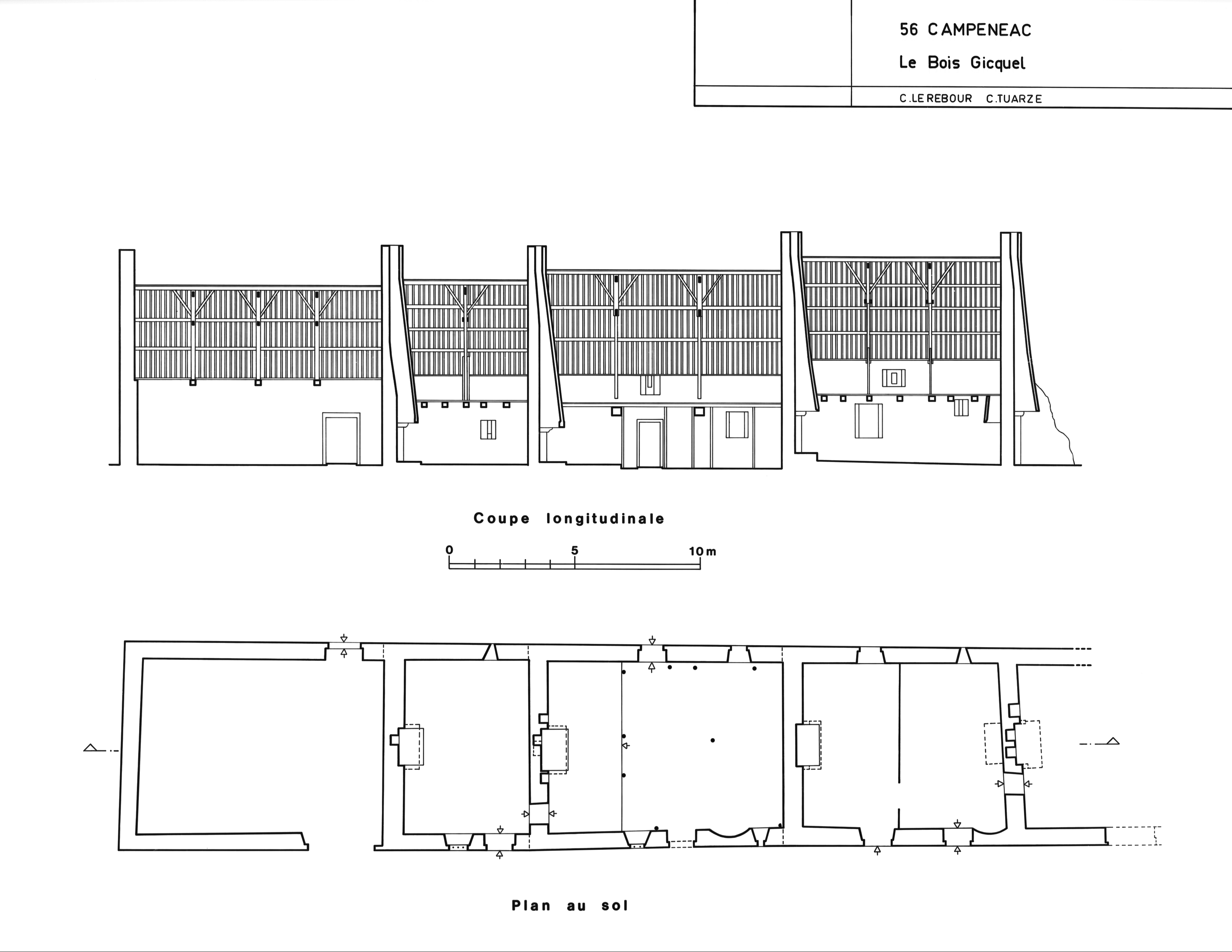 Ferme : coupe longitudinale et plan et sol de l'alignement (état en 1985)Immatriculation