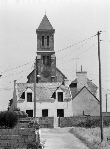 Ile-de-Sein, église paroissiale Saint-Guénolé : clocher, élévation ouest, état en 1986Immatriculation