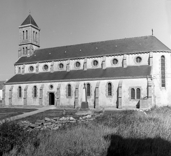 Ile-de-Sein, église paroissiale Saint-Guénolé : vue générale sud-est, état en 1986Immatriculation
