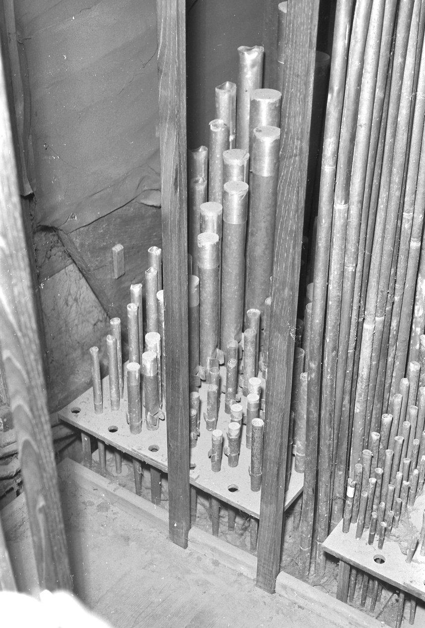 Tuyauterie du dessus du grand orgue, avant 1978.Immatriculation
