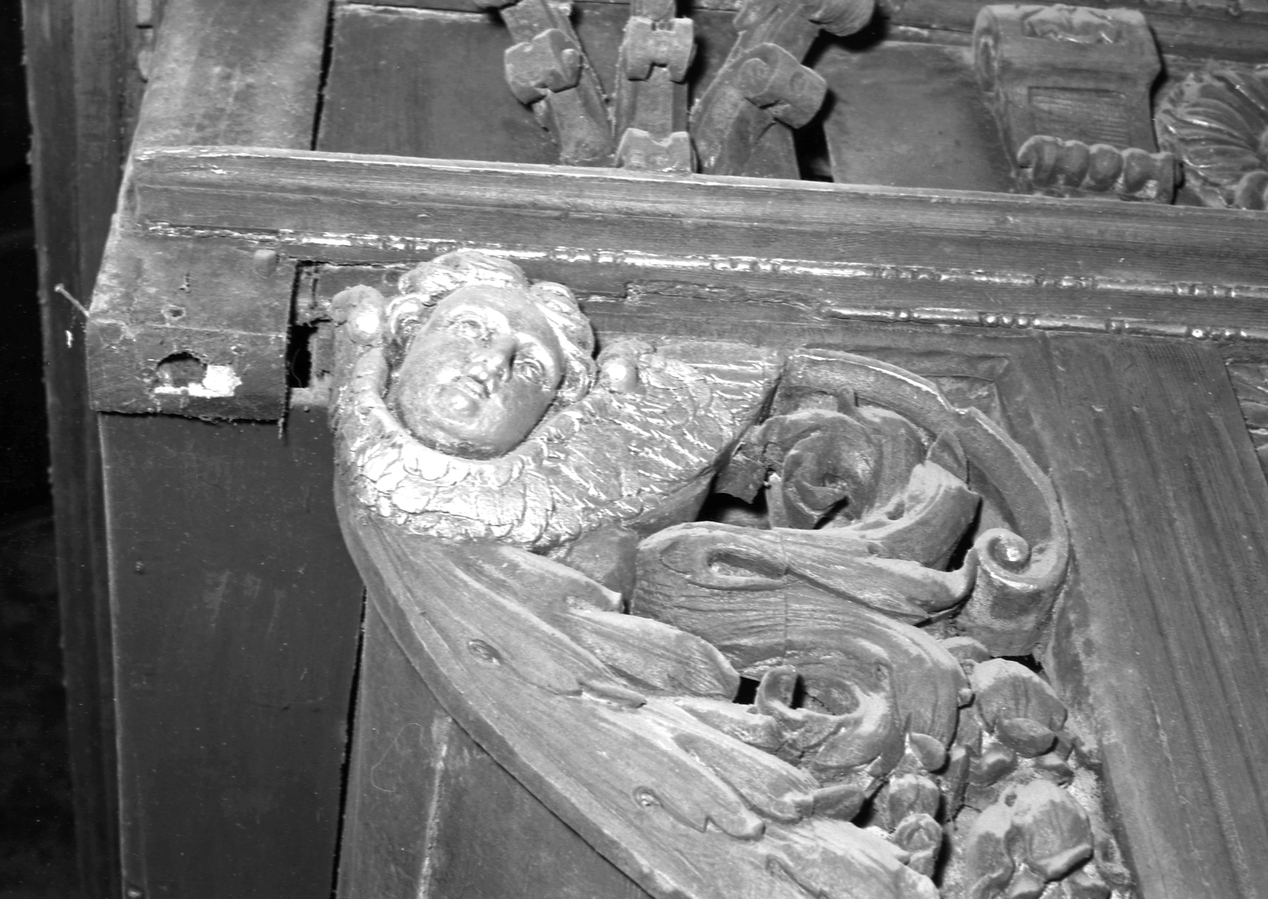 Décor gauche du soubassement du grand buffet.Immatriculation