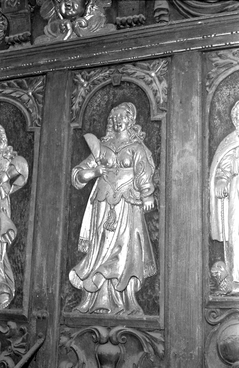 Soubassement du grand buffet, bas-reliefs sculptés et dorés, la Tempérance.Immatriculation