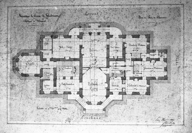 Plan du rez-de-chaussée : projet par Froelicher en 1848, partiellement réalisé (coll. privée)Immatriculation