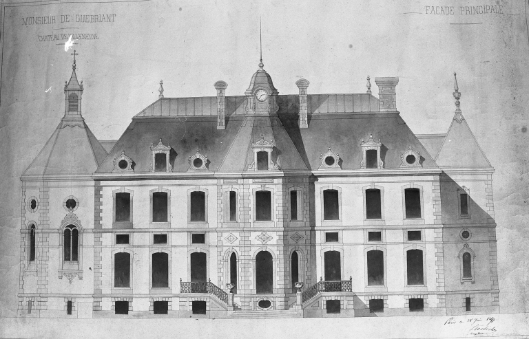 Elévation ouest : projet par Froelicher en 1849, partiellement réalisé (coll. privée)Immatriculation