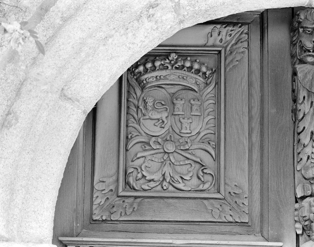 Corps central, porte d'entrée, détail blasonImmatriculation
