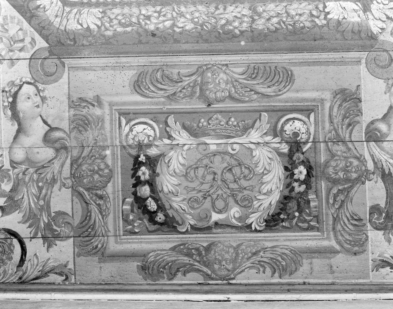 Plafond peint, détail monogrammeImmatriculation