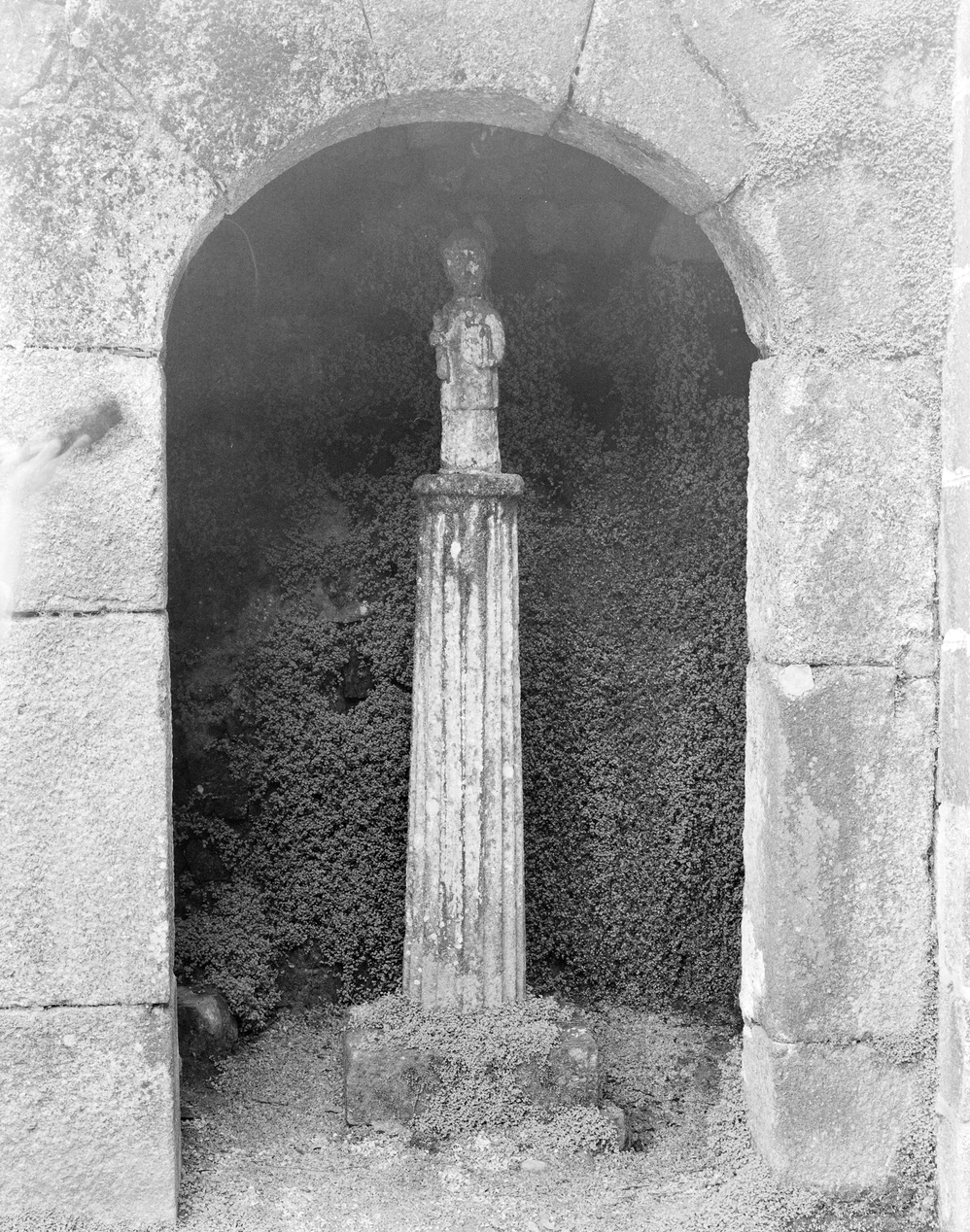 Cour, niche sous balustrade, colonne avec statuette d'un saintImmatriculation