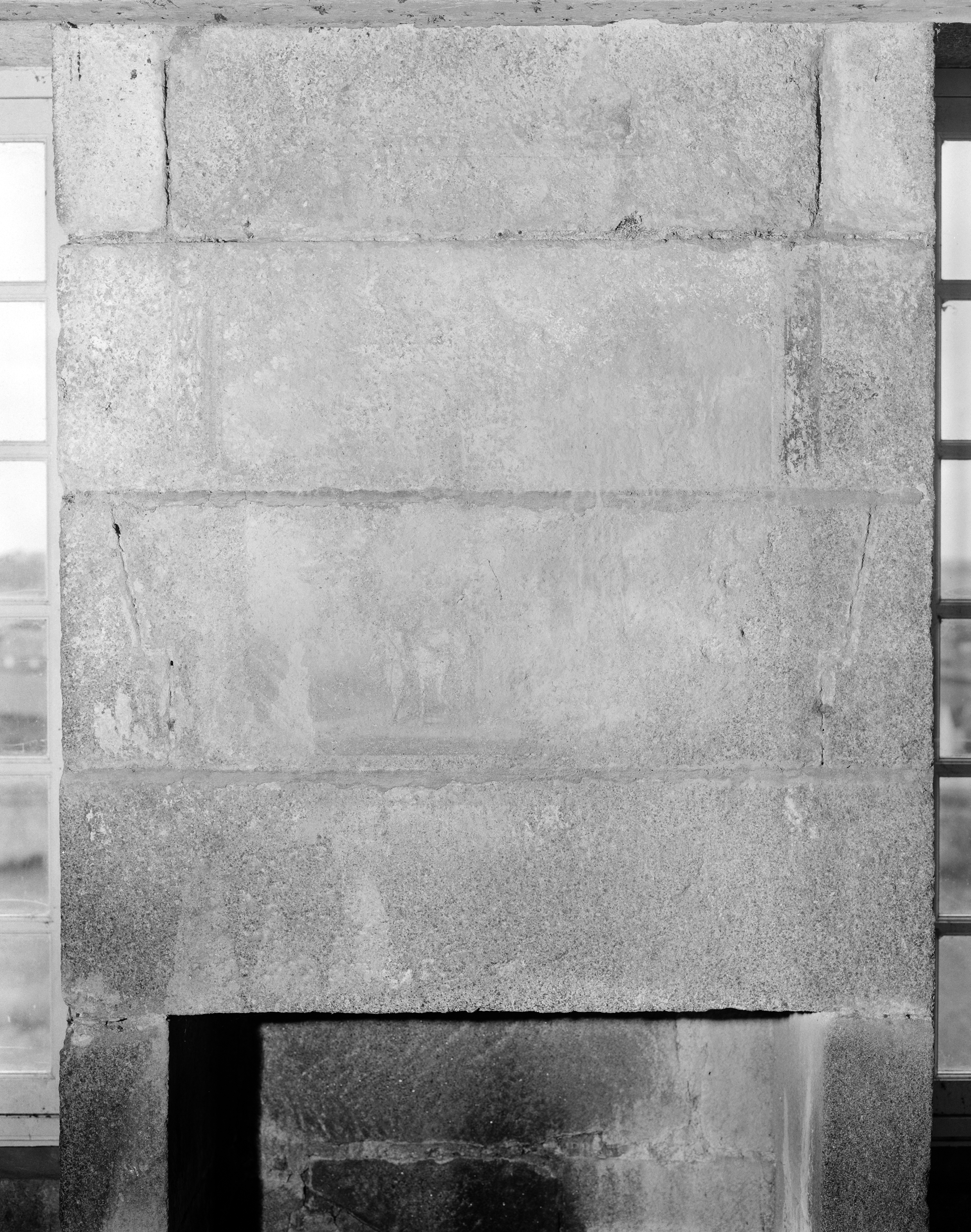 Étage 2, pièce 25, partie centrale, trumeau d'une cheminée : vestiges de peinture murale (état en 1986)Immatriculation