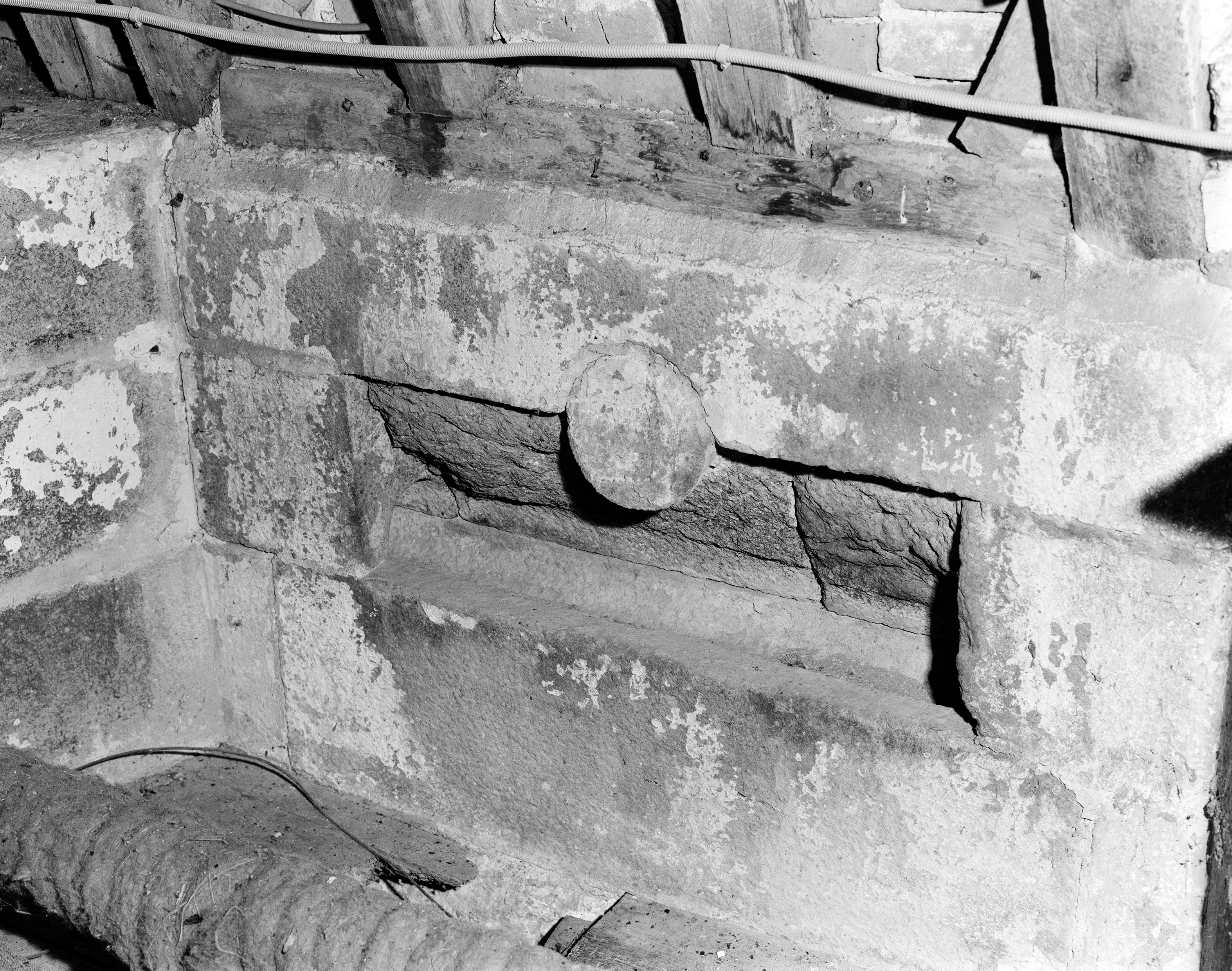 Château, deuxième étage, pièce 22 : vestige d'une baie abaissée et bouchée sur le mur sud (état en 1986)Immatriculation