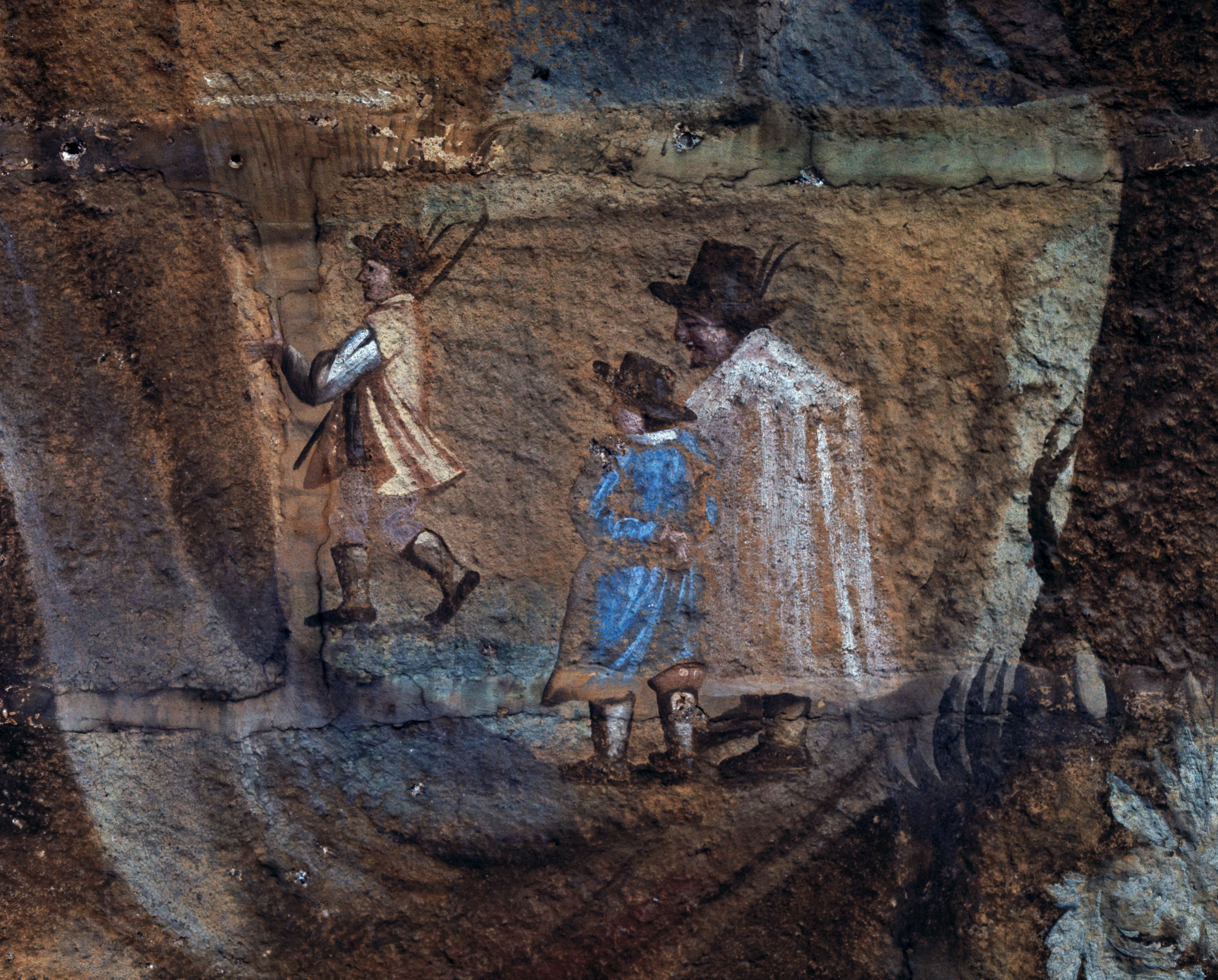 Peinture monumentale 1 (nord), Vie à la campagne : personnages de droite (état en 1986)Immatriculation