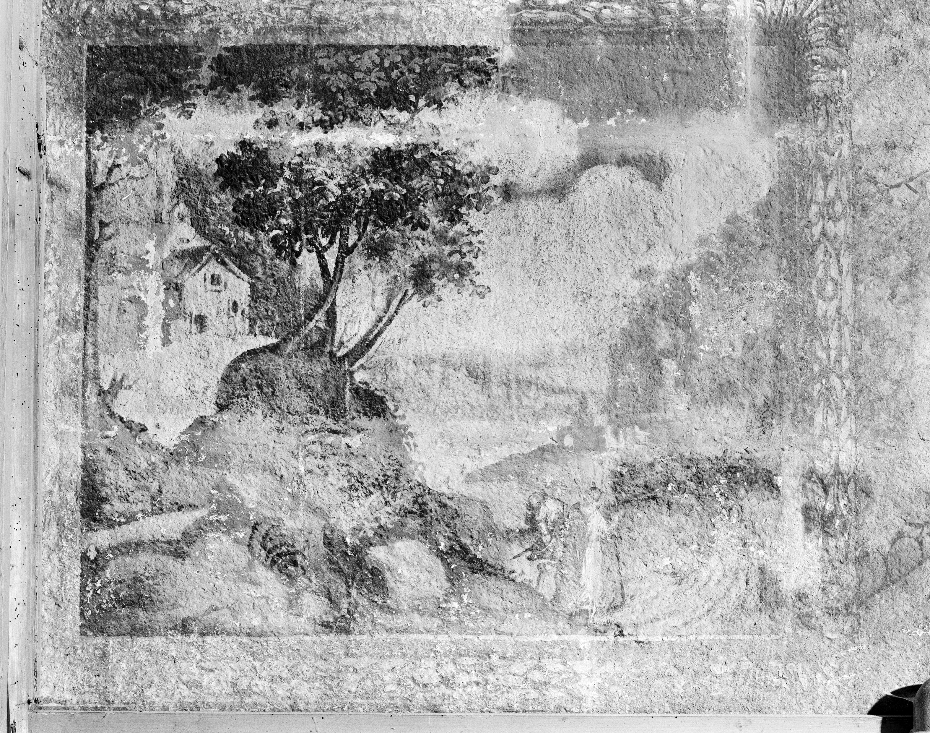 Peinture monumentale 2 (angle sud-est) : Paysage avec deux personnages (état en 1986)Immatriculation