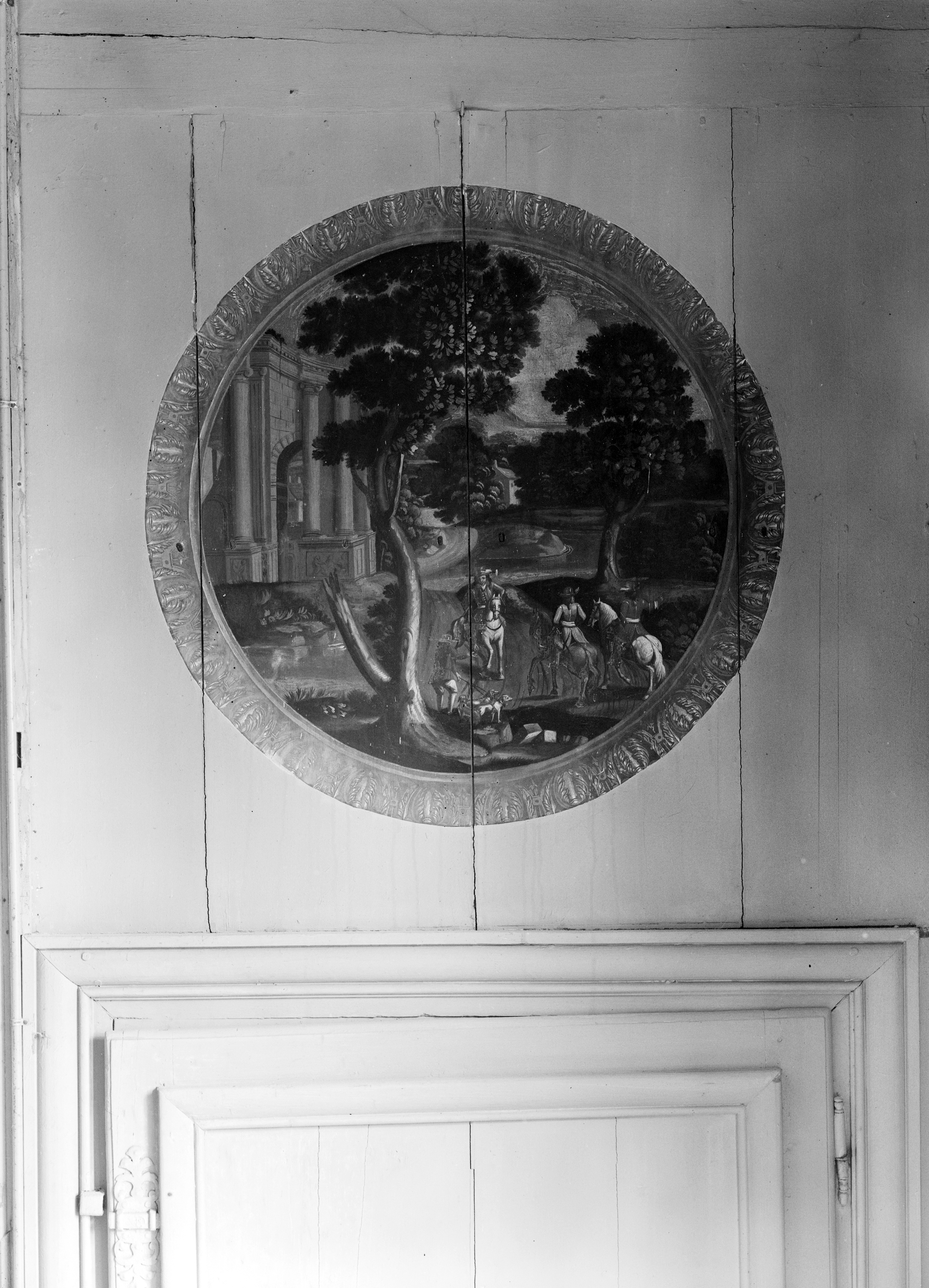 Dessus-de-porte, porte est : Paysage avec une chasse (état en 1986)Immatriculation