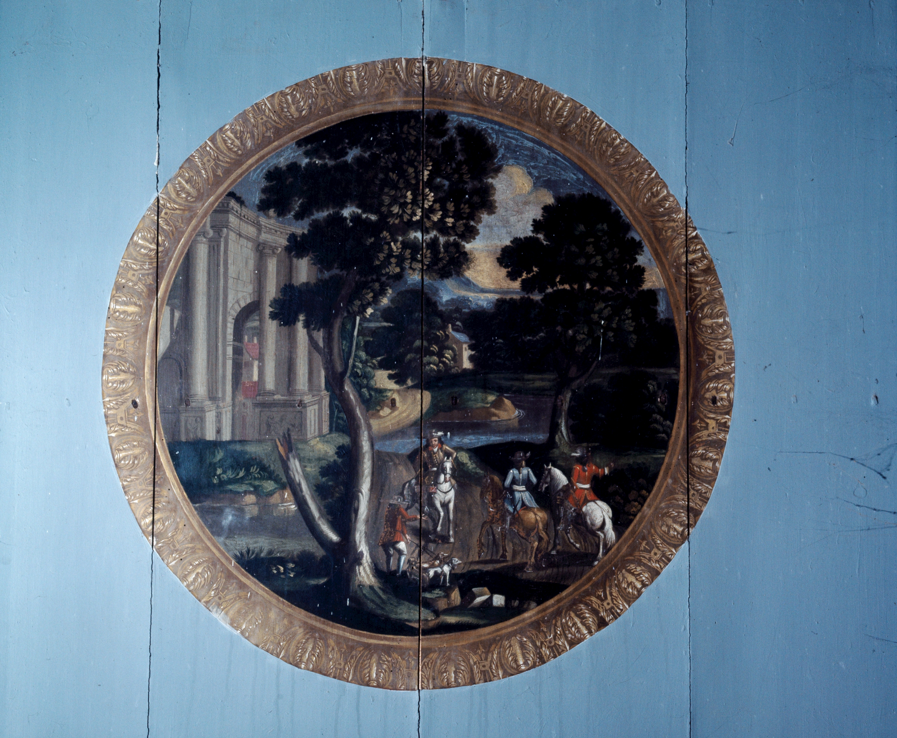 Dessus-de-porte, porte est : Paysage avec une chasse (état en 1986)Immatriculation